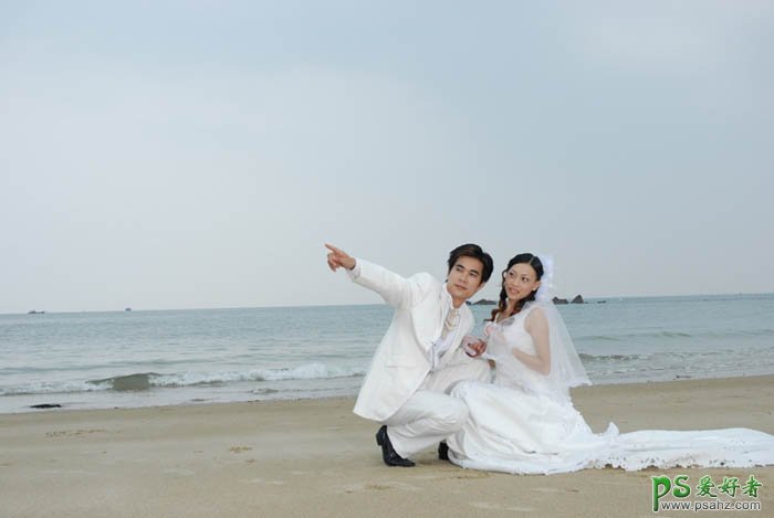 photoshop给海景婚片男女调出清晰效果