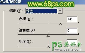 2、创建色相/饱和度调整图层,对绿色进行调整,参数设置如图4,效果如图5。