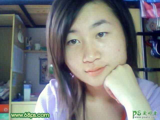 3、新建一个图层,按Ctrl + Alt + Shift + E 盖印图层。选择涂抹工具,稍微把人物头发部分涂顺一点。