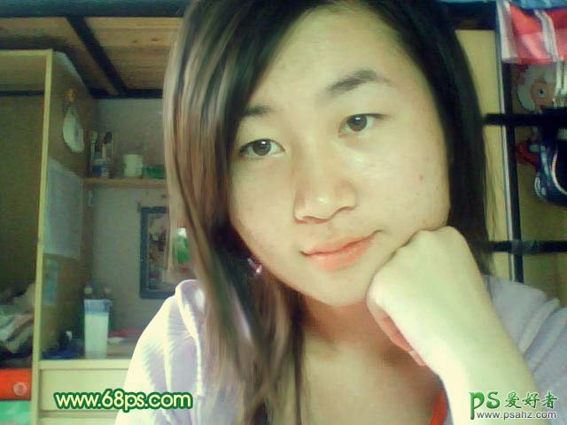 PS美女照片调色教程实例,PS给美人照片调出糖果色皮肤效果,素材图片像素不是很高,整体感觉有点失真和偏色。处理的时候最好把背景部分换掉或者模糊处理。这样整个画面就没有那么杂乱。人物部分重点在磨皮和细节的处理。色调可以按照自己的喜好调整。 最