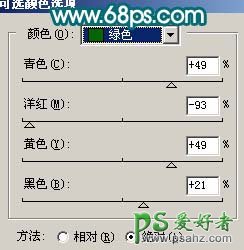 1、打开原图素材,创建可选颜色调整图层,参数设置如图1-4,效果如图5。