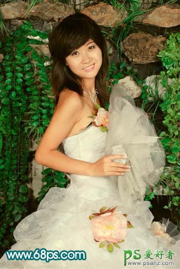 PS美女婚片调色教程,photoshop给纯美的少女婚纱照调出红润的皮肤色泽,本教程重点是给人物部分调色。素材图效果非常不错,只是色彩有点暗。人物部分色调有点单调。处理的时候可以按照自己的喜好给人物部分润色。背景只要稍微调整即可。 最终效果