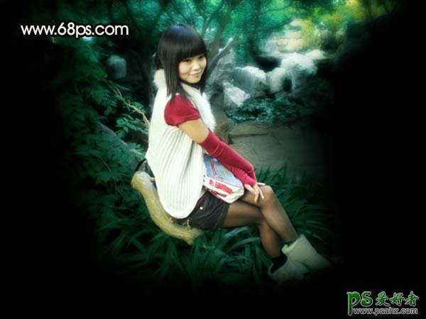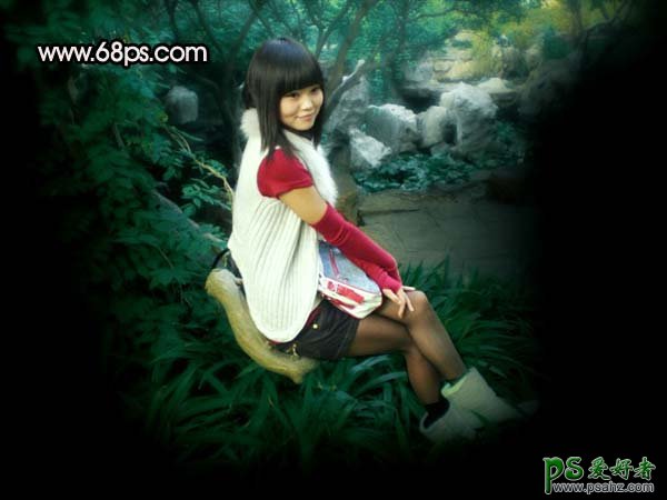 PS给黑丝少女艺术照调出可爱的暗红色彩