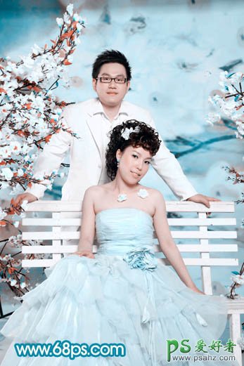PS调出浪漫蓝色调室内情侣婚纱照