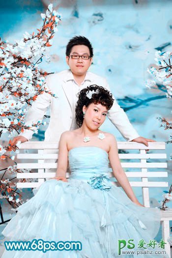 PS婚片调色教程实例,PS调出浪漫蓝色调室内情侣婚纱照,本教程的色调在RGB及Lab颜色下共同完成。调色的时候先把图片的局部换色。然后在Lab颜色下整体换色。最后就是一些细节的调整。操作起来非常简单。 最终效果 原图 1、打开原图素材,创