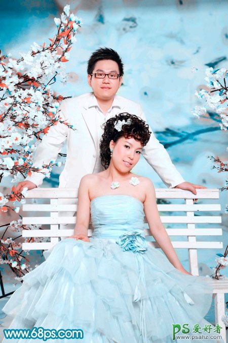 PS婚片调色教程实例,PS调出浪漫蓝色调室内情侣婚纱照,本教程的色调在RGB及Lab颜色下共同完成。调色的时候先把图片的局部换色。然后在Lab颜色下整体换色。最后就是一些细节的调整。操作起来非常简单。