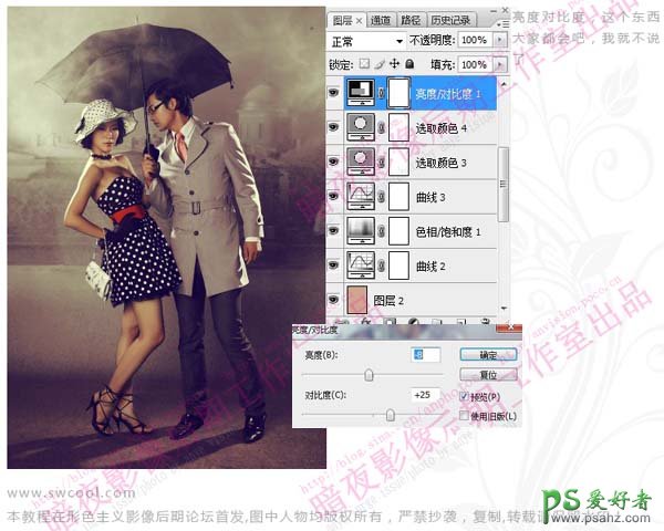 11、创建亮度/对比度调整图层,参数设置如下图。