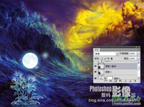 5、打开素材,并移至过来,放在画面的左侧,图层模式:滤色。将黑色屏蔽掉。