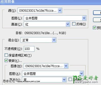 4、新建一个图层盖印图层(Ctrl + Alt + Shift + E),执行:图像 > 应用图像,参数设置如下图。