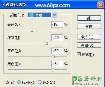 2、创建可选颜色调整图层,对青色及白色进行调整,参数设置如下图。