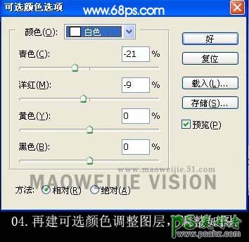 4、再创建可选颜色调整图层,参数设置如下图。