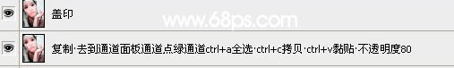 2、点通道面板,选择滤色通道按Ctrl + A 全选,按Ctrl + C 复制,点蓝色通道,按Ctrl + V 粘贴。回到图层面板,把图层不透明度改为:80%。然后新建一个图层,盖印图层,效果如图4。