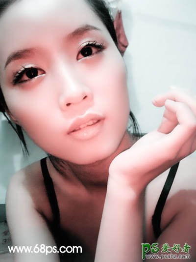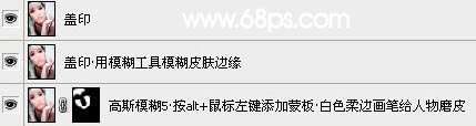 3、执行:滤镜 > 模糊 > 高斯模糊,数值为5,确定后按住Alt键盘添加图层蒙版,用白色画笔给人物磨皮,效果如图6。 4、新建一个图层,盖印图层,用模糊工具把皮肤边缘稍微模糊处理。