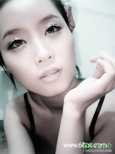 10、保存文件,不要关闭,然后再重新打开素材图片,现在同时有两个文件。回到刚才操作的PSD文件,新建一个图层,盖印图层。执行:图像 > 调整 > 匹配颜色,在设置面板的下面把“源”的图片设置素材图片的名称。确定后再按Ctrl + Shift + F 渐隐,把图层不透明度改为:40%。 11、新建一个图层,给眼睛涂上眼影,颜色为:#a0a0a0,效果如图16。