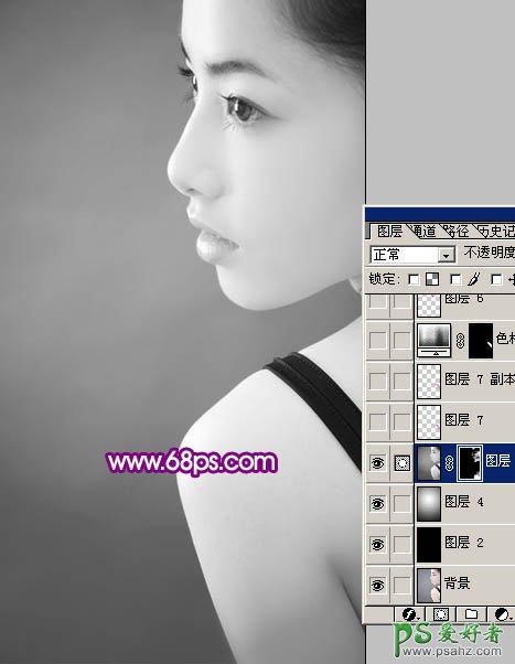 3、新建一个图层,按Ctrl + Alt + Shift + E 盖印图层,执行:滤镜 > 模糊 > 高斯模糊,数值为5,确定后按住Alt键添加图层蒙版,然后用白色画笔涂抹人物脸部及皮肤上有杂色的部分,给人物磨皮。