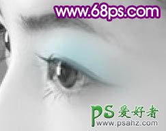 6、新建一个图层,把前景颜色设置为:#93D6DC,用画笔涂抹眼影部分,如图9,涂好后把图层混合模式改为“叠加”,效果如图10。