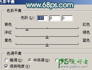 1、打开原图素材,创建色彩平衡调整图层,参数设置如图1,效果如图2。