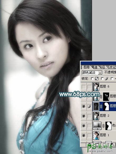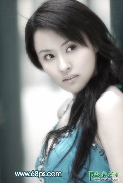 PS美女照片调色实例教程,photoshop调出黑白质感肤色美女艺术照,质感肤色一般要从皮肤的高光部分入手。制作的方法有很多,可以用通道计算,滤镜等工具把高光部分选区出来,然后用调色工具加亮。再调整下局部细节,即可完成效果。 最终效果 原图