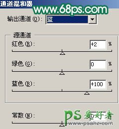 12、创建通道混合器调整图层,对蓝色进行调整,参数设置如图19,效果如图20。