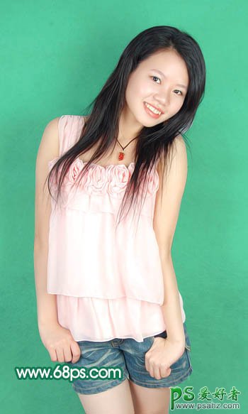 PS美女图片调色实例教程,PS给可爱的妹妹写真照调出粉嫩色彩,本教程的素材图片背景有点偏灰,人物部分看上去有点花。处理的时候可以把背景加上其它颜色,然后再相应的把人物部分调整下颜色,这样人物部分会突出一点。 最终效果 原图 1、打开原图素
