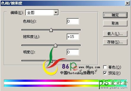 4、创建色相/饱和度调整图层,参数及效果如下图:
