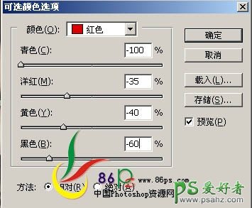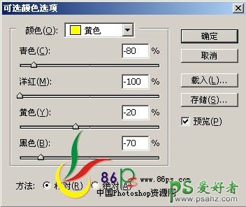 5、创建可选颜色调整图层,参数及效果如下图: