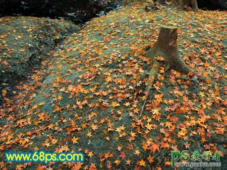 photoshop调出火红色彩落叶风景照