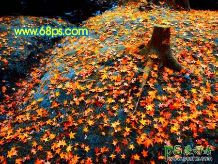 photoshop调出火红色彩落叶风景照