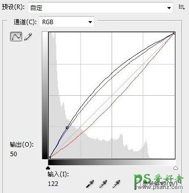 参数中红色线和蓝色线分别为红通道和蓝通道下面的调整。