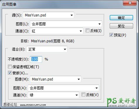 4、新建一个图层,盖印图层得到图层3,执行图形-应用图像,参数如图: