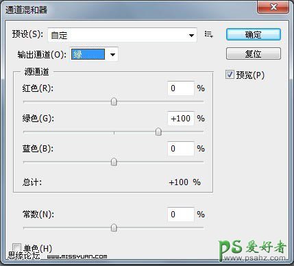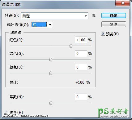 6、新建一个图层,盖印图层得到图层4,建立通道混合器图层,分别对红、绿、蓝三通道进行调整,参数及效果如下图: