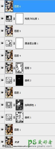8、新建一个图层,盖印图层8,整体修饰一下细节,完成最终效果。下图为图层参照及效果图: