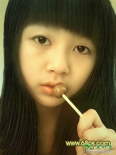 PS给吃糖果的小妹妹手机照片调出可爱的暖色调