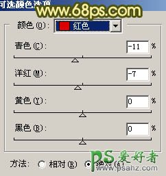 10、创建可选颜色调整图层,对红色进行调整,参数设置如图14,效果如图15。