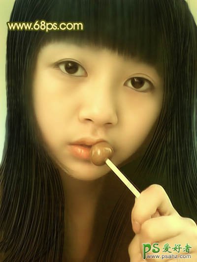12、新建一个图层,盖印图层,用加深工具把头发部分加深一下,效果如下图。