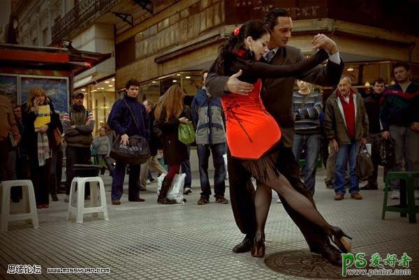 PS照片调色实例教程,photoshop给一对街舞情侣照调出漂亮的夜景效果,原图素材可能是傍晚的街道拍摄的,照片的光线还比较充足。为了体现出夜晚的味道。作者把图片的光线压暗了很多,局部的色调也换上了灯光的色调。总体感觉是在夜色下的场景,非常