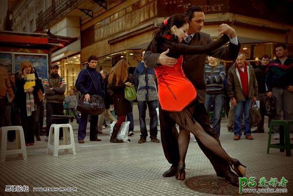 8、用加深减淡对整体处理(人物衣物、旁观者、建筑)进行处理,塑造立体感(光效)。再建立选区,将人物头部周围建筑,提亮,不要太曝,到位就行。只是为了做出一种气氛,并没有什么风格、什么色调可言,后期的色调,大多在于前期。 后期可以沿用前期的色调,也可以在原有的色调上,加以处理。此教程,只对这张图有效。方法就是这些。最近很忙,忙毕业设计,所以没时间写,加上冷,吹吹风,就感冒了。再加上,并没有多少人愿意写教程,没多大干劲。写此教程,献给心地善良的PS爱好者。