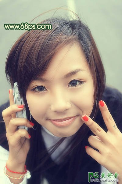 PS美女照片调色实例教程,PS给外景人物照片调出柔美的淡橙色效果,淡橙色有种黄昏的阳光照射的味道。调色的方法也非常简单,只要用调色工具主要是可选颜色,把人物的肤色调成大致的橙红色,然后再适当的柔化处理即可。 最终效果 原图 1、打开原图素
