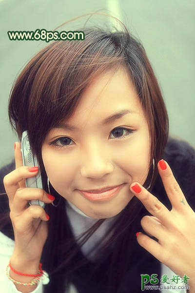 PS美女照片调色实例教程,PS给外景人物照片调出柔美的淡橙色效果,淡橙色有种黄昏的阳光照射的味道。调色的方法也非常简单,只要用调色工具主要是可选颜色,把人物的肤色调成大致的橙红色,然后再适当的柔化处理即可。 最终效果 原图 1、打开原图素