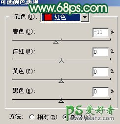 12、创建可选颜色调整图层,对红色进行调整,参数设置如图17,效果如图18。