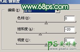13、创建色相/饱和度调整图层,适当降低饱和度,参数设置如图19,效果如图20。