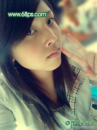 photoshop给漂亮MM手机照调出淡淡的青黄色