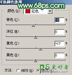 3、创建可选颜色调整图层,对红色及白色进行调整,参数设置如图4,5,效果如图6。