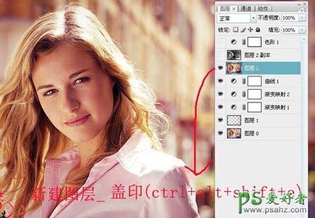 5、新建一个图层,按CTRL+ALT+SHIFT+E盖印可见图层。