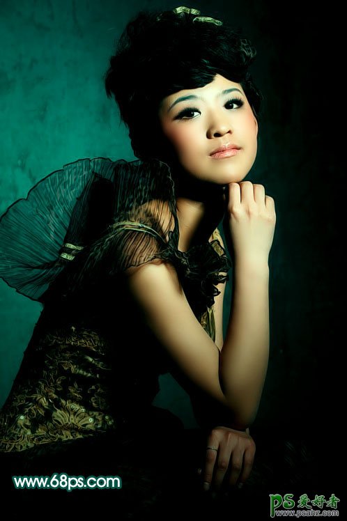 PS人物照片调色实例教程,PS给人物艺术照调出红润的质感肤色,本教程介绍较暗的人物照片调色方法。调色之前需要对人物聚光处理,这样能够更好突出人物脸部及肤色的质感。然后用调色工具加强对比度,再适当压暗色调,人物部分的质感就会非常明显。