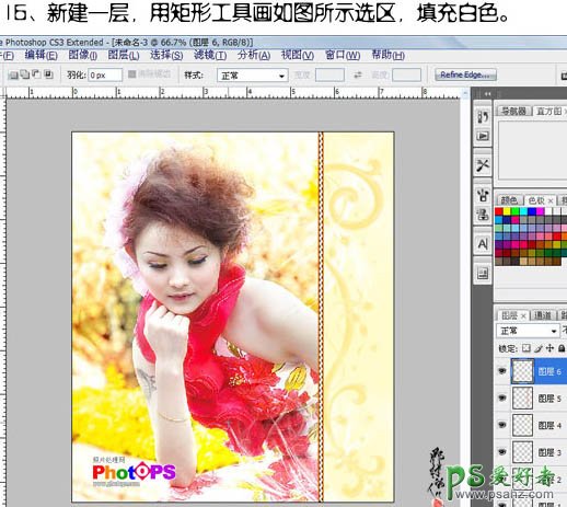 16、新建一层,用矩形工具画如图所示的选区,填充白色。
