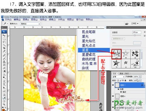图案,添加图层样式,也可以用CS3自带笔刷。