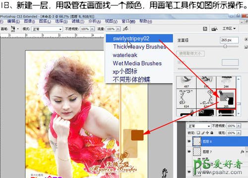 18、新建一个图层,用吸管在画面找一个颜色,用画笔工具作如图所示的操作。
