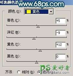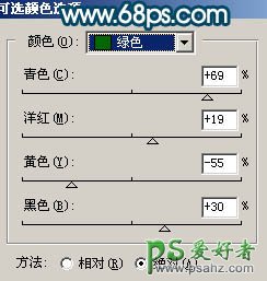 4、创建可选颜色调整图层,参数设置如图9,10,效果如图11。