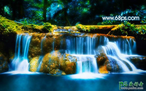 9、新建一个图层,盖印图层,用加深工具把上面的树林部分局部加深处理,效果如下图。